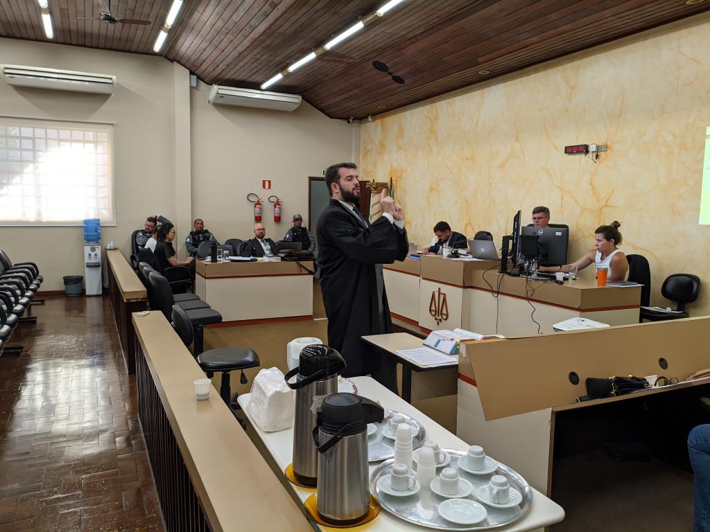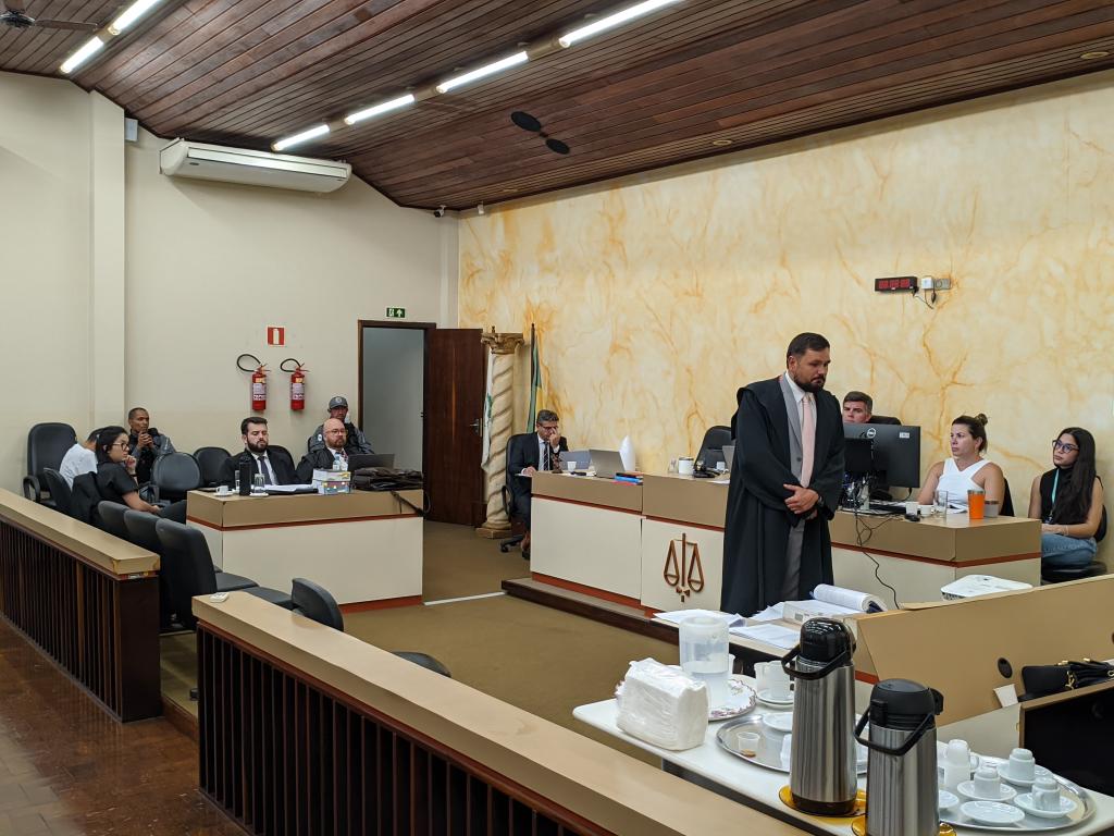 Defesa do réu apresenta suas teses ao Conselho de Sentença durante o Júri Popular no Fórum de Nova Esperança