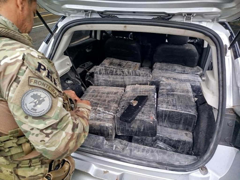 PRF apreende mais de 400 quilos de maconha em veículo roubado