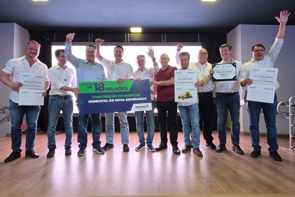 Além do anúncio do hospital, o Governo do Estado liberou outros investimentos para Nova Esperança. Foram confirmados R$ 30,6 milhões para pavimentação de aproximadamente 25 quilômetros das estradas Funda e Piúna, na área rural; R$ 5,6 milhões para aquisição de novos maquinários; e R$ 10,3 milhões para pavimentação de vias urbanas por meio do programa Asfalto Novo, Vida Nova, da Secretaria de Estado das Cidades.
