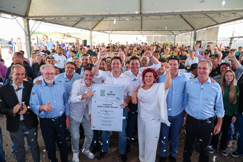 O município de Mandaguari, na região Metropolitana da Maringá, recebeu na tarde desta quarta-feira (10) a inauguração do novo viaduto sobre a PR-444. Grandes nomes da política estadual estiveram presentes como o governador Carlos Massa Ratinho Junior e o secretário de Estado do Planejamento do Paraná, Ulisses Maia.