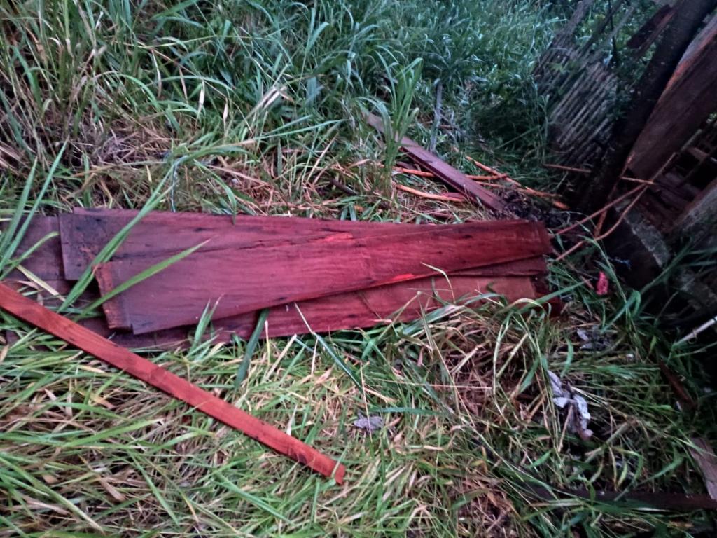Madeiras que estavam sendo retiradas de uma construção rural foram recuperadas após a intervenção da Polícia Militar, frustrando a tentativa de furto na propriedade