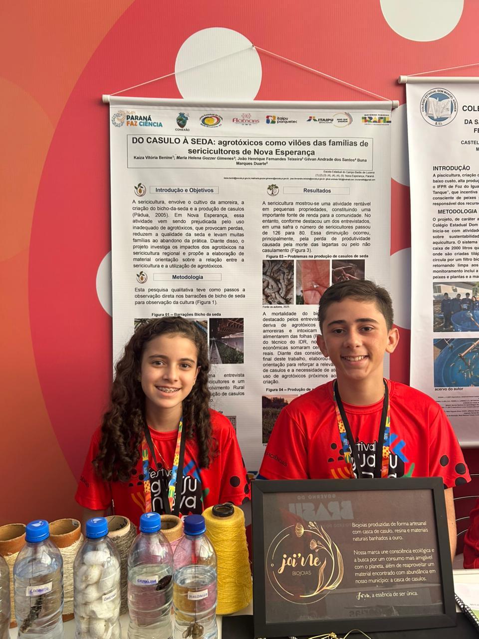 O projeto premiado, intitulado “Do Casulo à Seda: agrotóxicos como vilões das famílias de sericicultores de Nova Esperança”, investigou os impactos do uso de agrotóxicos na produção de seda na região, propondo ainda a criação de materiais de orientação para produtores locais. A pesquisa destacou a importância de práticas mais sustentáveis na sericicultura, atividade tradicional que compõe parte da economia e da identidade cultural do município.