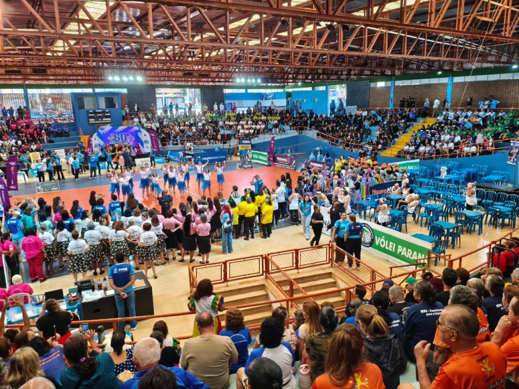 Ginásio “O Capelão” lotado na manhã desta quarta-feira (15) marca a abertura da 13ª edição dos Jogos 60+, em Nova Esperança, reunindo delegações de quase 50 municípios em um ambiente de integração, cultura e valorização da melhor idade – Fotos Alex Fernandes França/jornalnoroeste.com