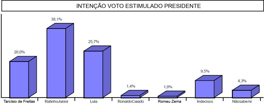 O levantamento também traçou um panorama do cenário eleitoral estimulado entre os eleitores de Nova Esperança. Na intenção de voto para Presidente da República, o governador do Paraná, Ratinho Junior, aparece na liderança com 38,1% das preferências, seguido pelo presidente Luiz Inácio Lula da Silva, com 25,7%, e pelo governador de São Paulo, Tarcísio de Freitas, que soma 20,0%. Os demais nomes citados — Ronaldo Caiado (1,4%) e Romeu Zema (1,0%) — apresentam percentuais menores, enquanto 9,5% dos entrevistados se declararam indecisos e 4,3% afirmaram não saber ou preferiram não responder.