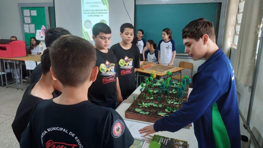 Entre os trabalhos em evidência está o projeto “Do Casulo à Seda: agrotóxicos como vilões das famílias de sericicultores de Nova Esperança”, aprovado para a Feira de Inovação das Ciências e Engenharias (FIciências), que será realizada entre os dias 21 e 25 de outubro de 2025, em Foz do Iguaçu. O estudo analisa os impactos do uso de agrotóxicos na produção de seda e na vida das famílias sericicultoras, atividade que marcou a história e a economia local.