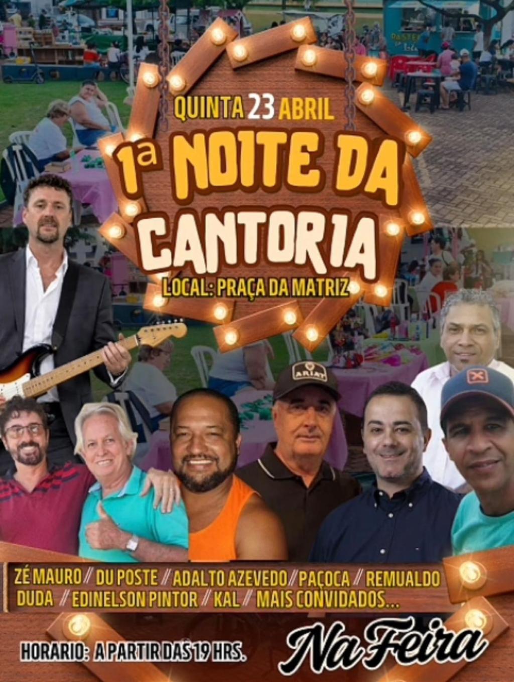 Além da feira, o público poderá prestigiar a “Noite da Cantoria”, que começa às 19h, também na Praça da Matriz. A programação musical contará com a participação de artistas locais como Zé Mauro, Du Poste, Adalto Azevedo (Paçoca/Remualdo), Duda, Edinelson Pintor, Kal, entre outros convidados, promovendo um espaço de lazer e integração cultural para toda a família.