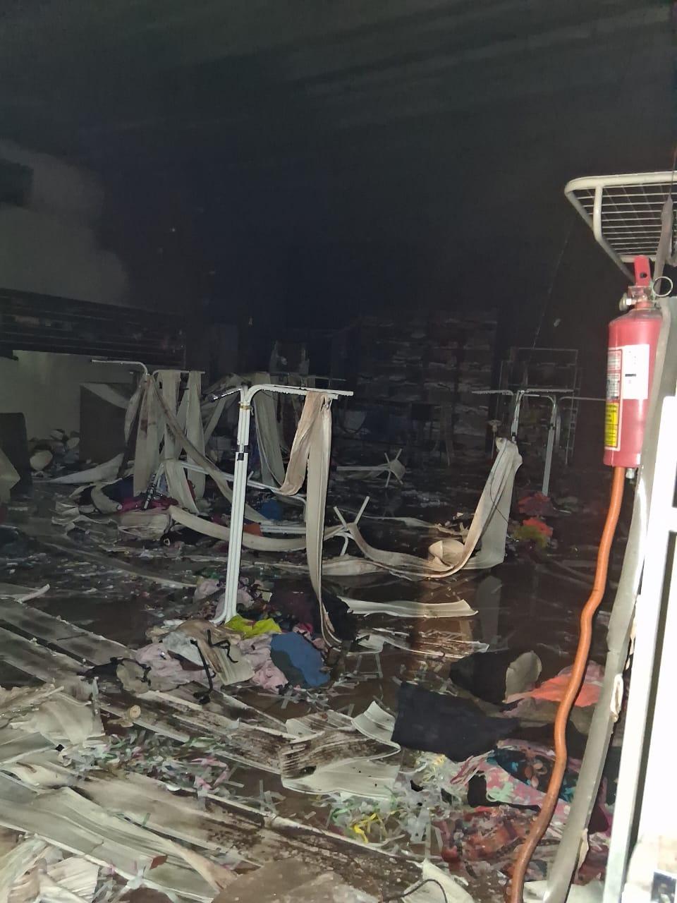 Fogo atingiu empresa de confecção e calçados; apesar da destruição total, não houve registro de vítimas