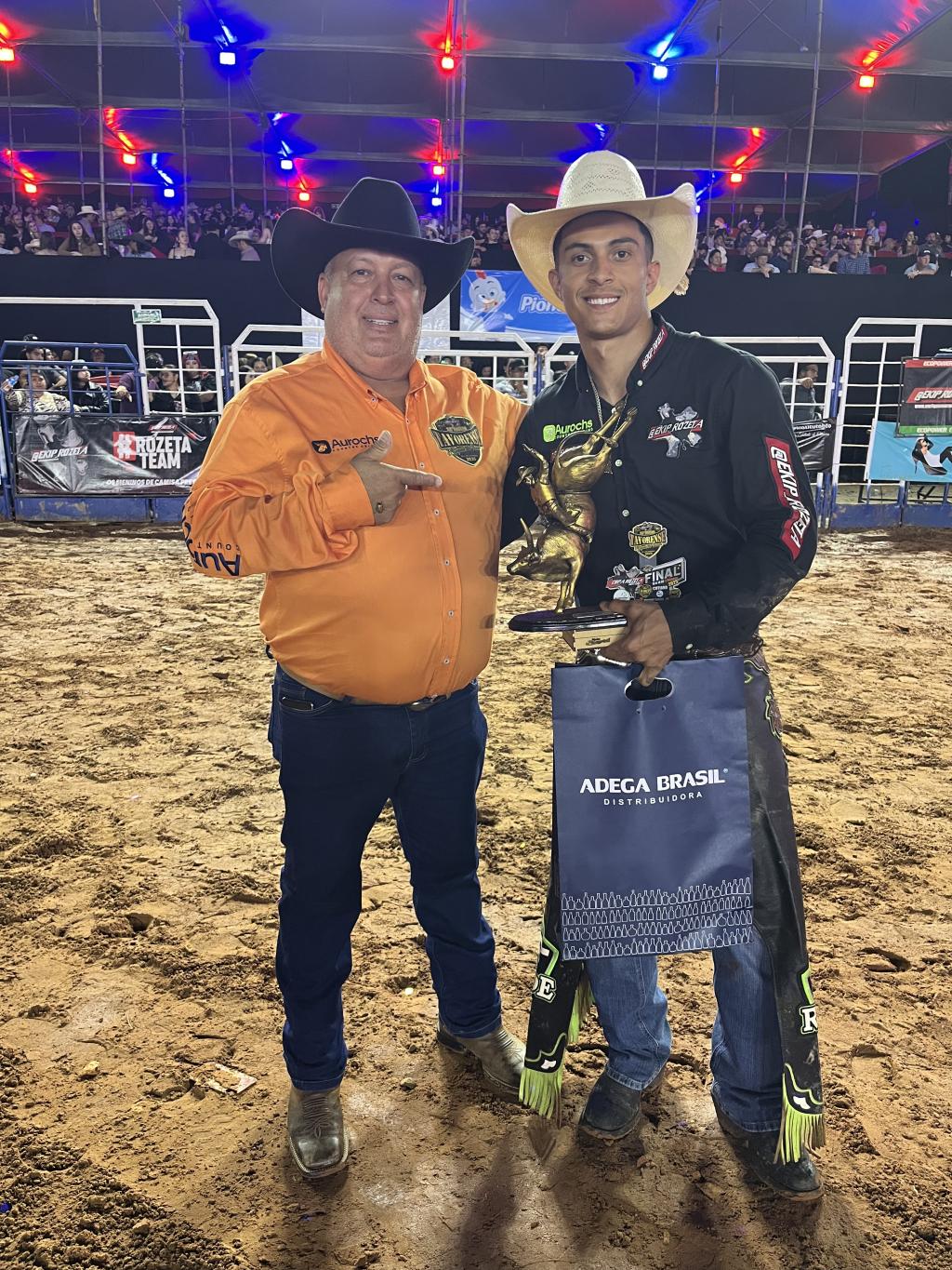 “Kaju”, presidente do Rodeio Tavorense, ao lado de Leandro Henrique, comemorando o título de bi-campeão em Joaquim Távora