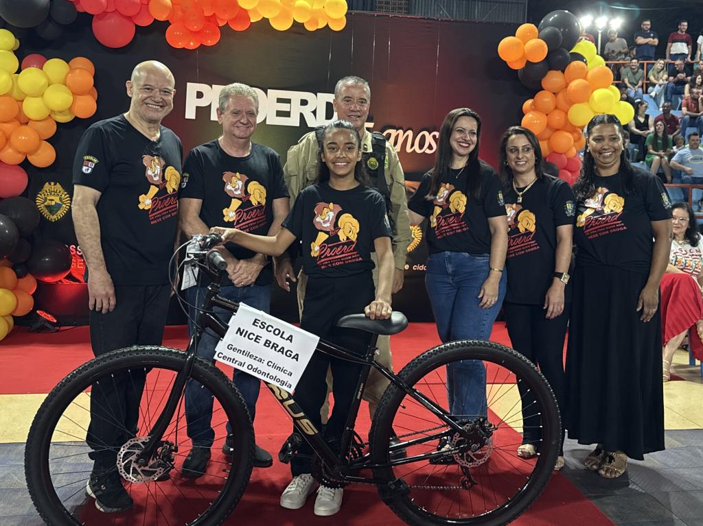 Durante a cerimônia, um aluno de cada turma representou seus colegas na entrega simbólica dos certificados de conclusão, enquanto os autores das melhores redações sobre o tema do programa foram premiados com bicicletas.