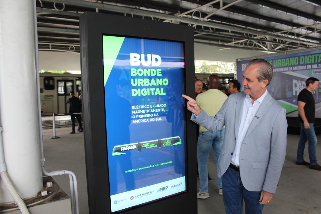 PIONEIRO – O Paraná será o primeiro estado da América do Sul a adotar Bonde Urbano Digital no transporte coletivo. Ele fará a linha Pinhais-Piraquara, que transporta, em média, 10 mil passageiros por dia. O BUD fará a linha direta, sem paradas intermediárias no caminho. Os veículos tradicionais continuarão operando normalmente.