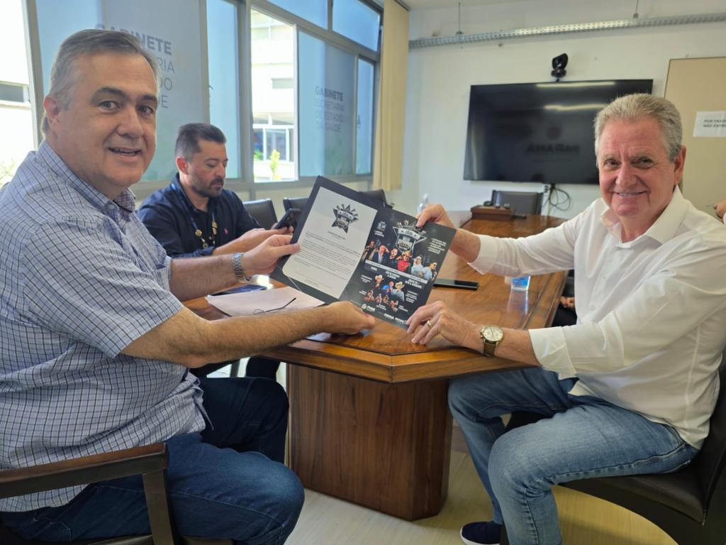 Eduardo Pasquini entrega convite oficial ao secretário estadual de Saúde, Beto Preto, para o Rodeio de Nova Esperança, reforçando o diálogo institucional e a parceria em ações voltadas à saúde pública no município
